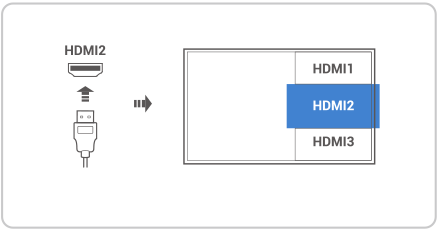③ 打开电视机,按下电视机原厂遥控器的“信源键”,切换至魔方所连接的信号源(如下图),完成信号切换。