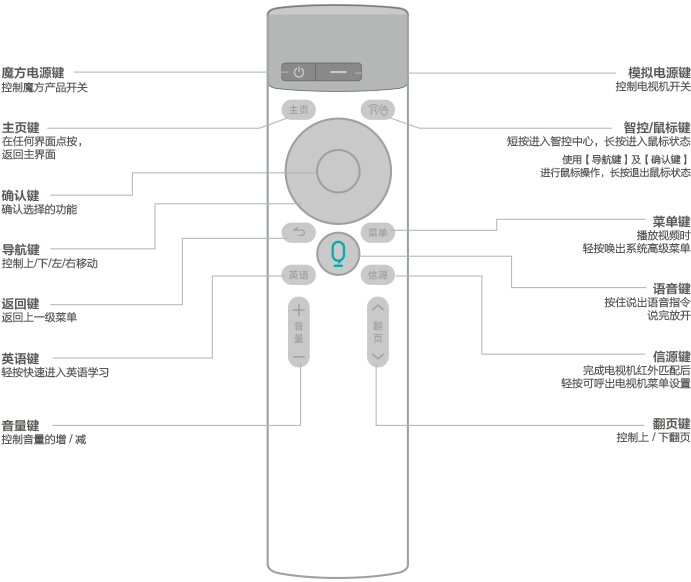④ 所有按键正常,但按下语音键无响应,更将遥控器无线接受更换一个USB接口后再次尝试,若不成功,请联系售后客服,